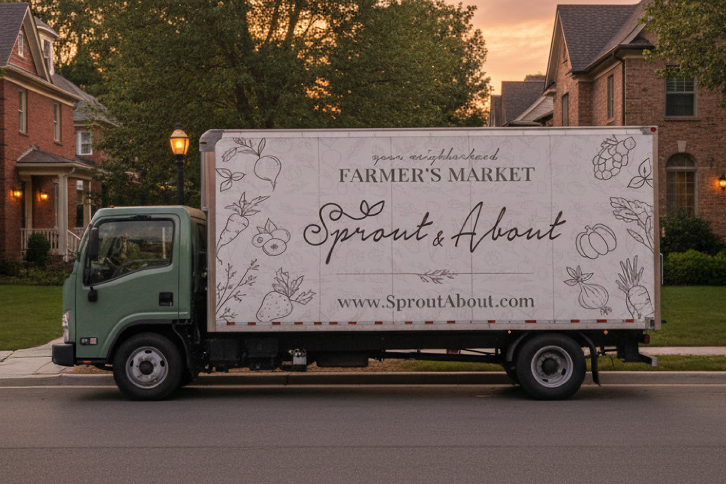 Sprout & About is a mobile farm market truck I created from the ground up to expand access to fresh, locally sourced food across Eastern Washington. This involved developing a complete brand system including identity, packaging, website design, and social media campaign to support a modern, community-centered market on wheels. The goal was to blend warmth and transparency with strategic design to position the brand as both approachable and elevated.